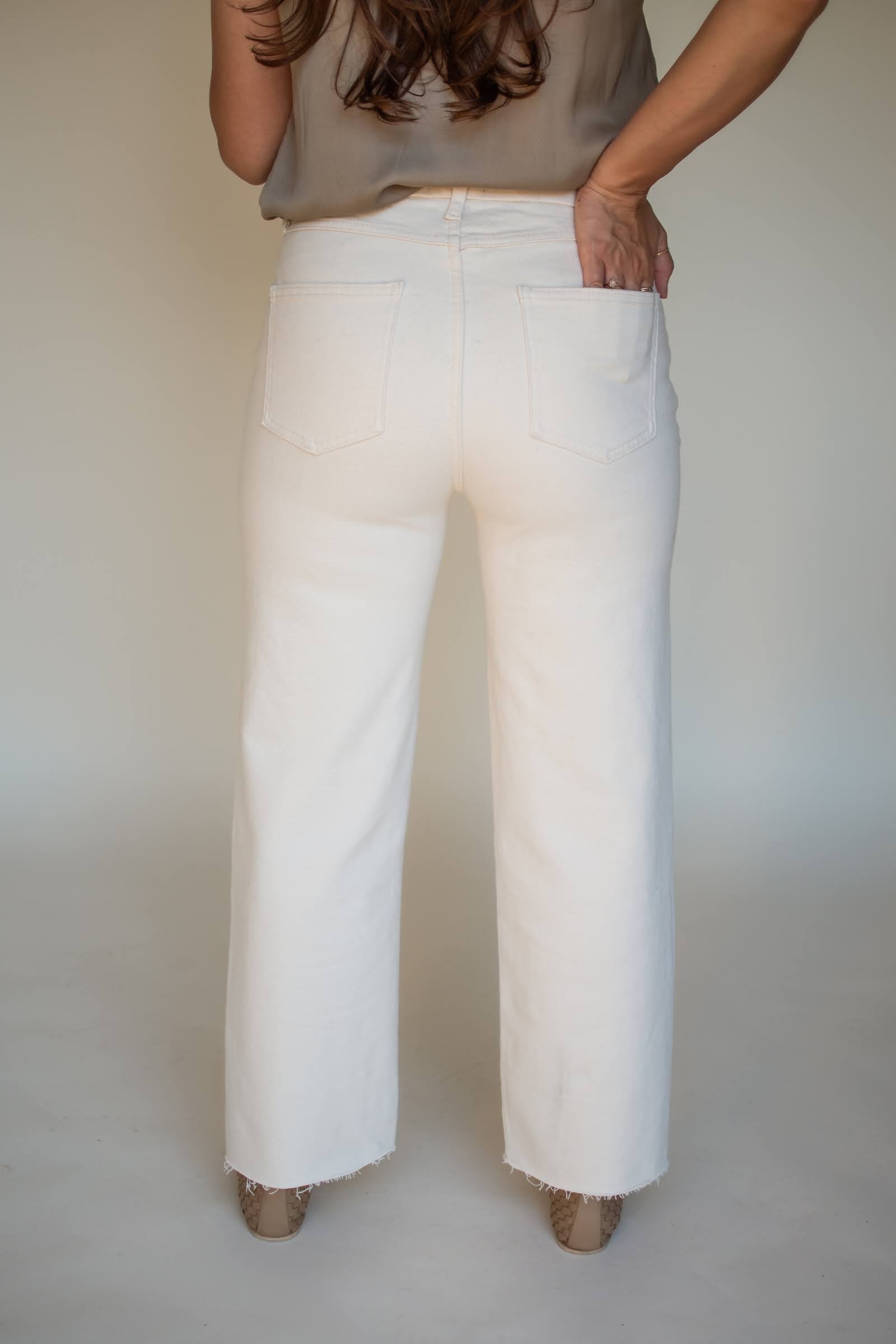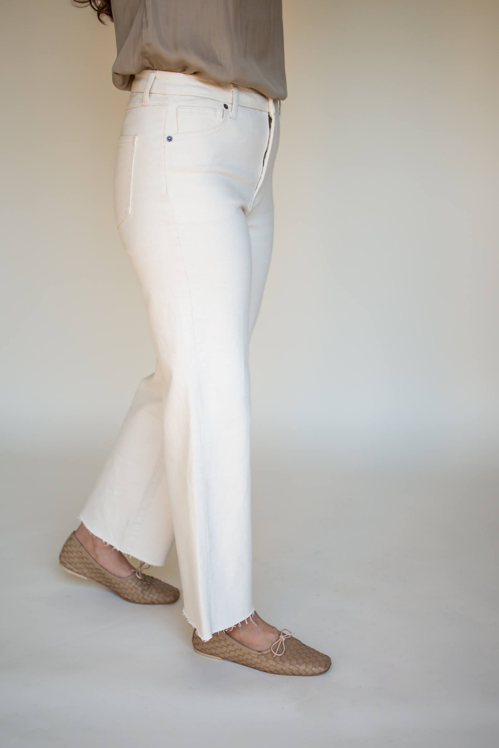 Polished, versatile, and endlessly flattering — these high-rise wide-leg jeans by Oliver Logan are designed to sculpt and smooth while keeping comfort at the forefront. Fitted through the hip with a cropped raw hem, they strike the perfect balance between timeless and modern. Finished in a fresh Ecru wash, they’re the ultimate neutral — ready to pair with anything in your wardrobe.
